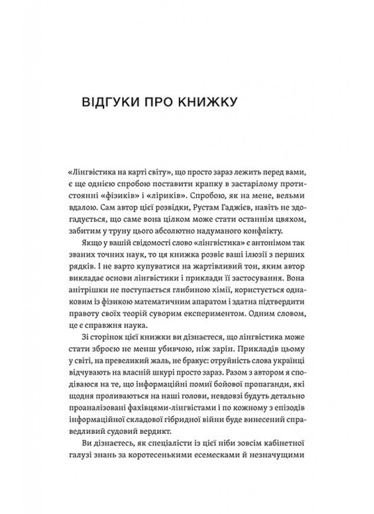 Мові байдуже хто ви: святий чи грішник, благодійник або ж вбивця. Якщо за життя вам вдалося зробити щось достатньо незвичне чи екстравагантне, мова з радістю покладе вас у шафку і дбайливо збереже для нащадків. У книжці мовознавця Рустама Гаджієва ви знайдете лінгвістичні історії з усього світу — від Нікарагуа, де місцеві діти самі створили для себе жестову мову, й до Великої Британії з її Пороховою змовою, катами і започаткованими ними словами.