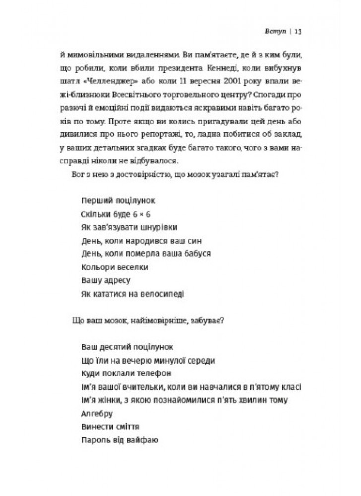 Ця книга може змінити ваше життя, адже коли ви зрозумієте мову пам’яті й те, як вона функціонує, дізнаєтеся про природні слабкості та потенційні надздібності, ви зможете значно покращити свою здатність запам’ятовувати й не боятися забувати.