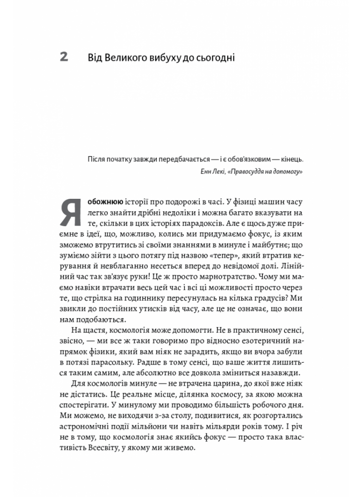 Ми знаємо, що у Всесвіту був початок. Після Великого вибуху він перейшов від стану надщільності до всеосяжного шару космосу із розпеченої плазми у формі куль — перших зірок та планет. На одній із таких планет за дивним збігом обставин зародилося життя... Але там, де є початок, має бути і кінець. Мак стверджує: він може настати будь-коли, в будь-який день. Що це означатиме для нас і чи є нам сенс складати плани на наступні вихідні, якщо все може раптово скінчитися в один момент?