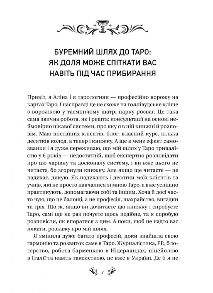 Із цією книгою химерний світ Таро стане для вас простим і зрозумілим. Сутність кожної карти, її символічне значення, детальне авторське тлумачення енергій і архетипів завжди напохваті. Здобуті знання як провідна зірка освітлюватимуть шлях, даючи вам і новий напрям, і надію, і право бути розвідником для інших.