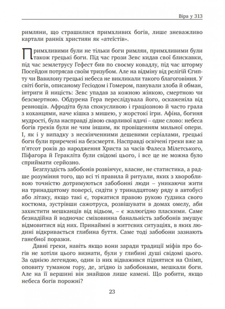А також за Бога, церкву, історію, насолоду, довкілля, мистецтво, майбутнє, врешті-решт, віру в себе? Кожною з цих пропозицій автор «проходиться» легко та невимушено, доступною мовою, з витонченим гумором відсилає нас у філософські сфери, вільні від догматики та усталених переконань, пропонує інтригуюче бачення і тлумачення історичних фактів і відомих джерел, зокрема, деяких місць Біблії. Читачеві нашої країни, яка стоїть на геополітичному та історичному роздоріжжі, варто дослухатися до цих цінних порад, аби стати свідомим, розумним, впевненим у собі модерним українцем ХХI століття.