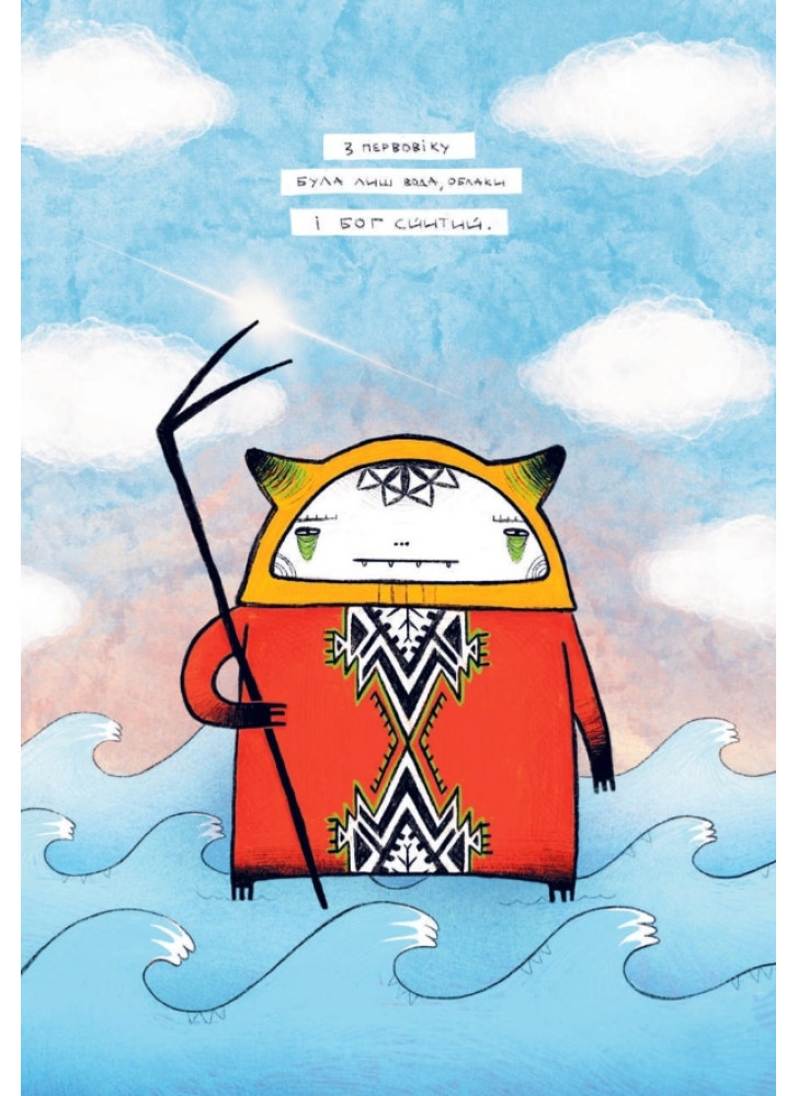 В мандрівку з нами вирушать і добре знайомі персонажі українських міфів, і невідомі герої. Отож, з первовіку була лиш вода, облаки і бог сйитий… Хочете знати, як творився світ? Арідник го знає…
