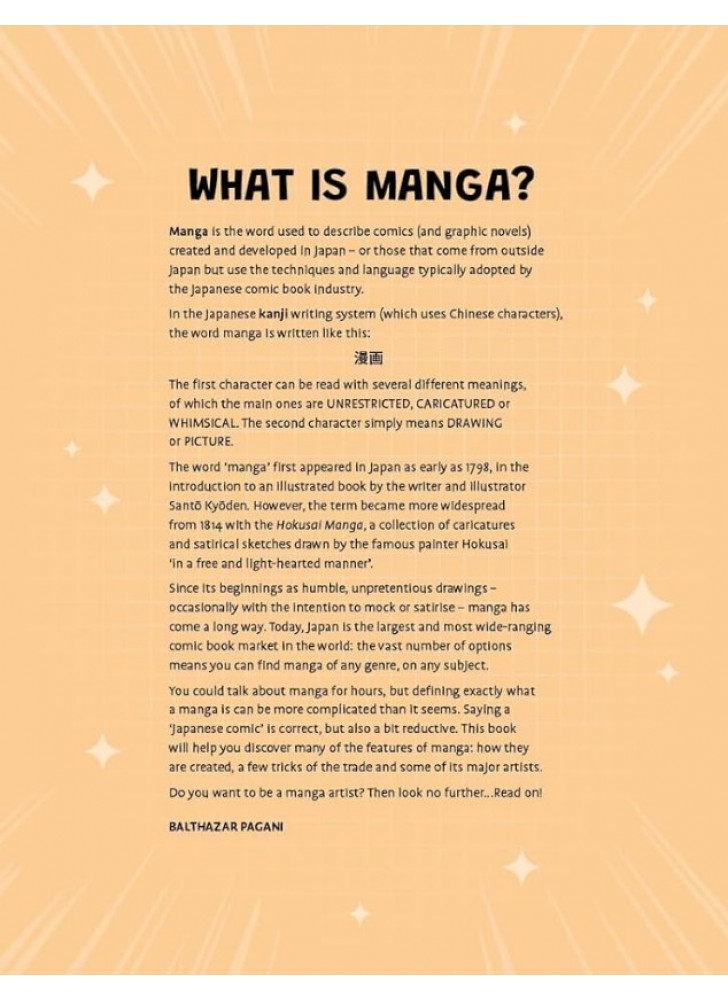 Ідеальний посібник для художників-початківців, які люблять мангу. Ця книга, представлена в стилі манги, проводить читачів через повний творчий і професійний процес створення манги, від спалаху натхнення до публікації. Після «Як намалювати графічний роман» Бальтазар Пагані повертається разом із експертом з манги Асукою Озумі, щоб демістифікувати процес створення манги — від початкової ідеї, яка перетворюється на історію, до того, як це – працювати в професійній студії манги.