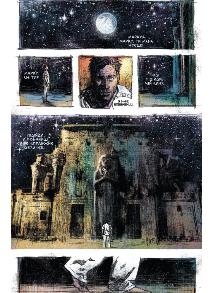 Але, ймовірно, ці обличчя — лише маски. За деякими ховаються друзі, а за іншими — вороги. Або навіть гірше: боги і монстри! Марку доведеться пробиватися з боєм. Чи врятує Марка його покровитель цього разу? Місяць високо в небі, маска на обличчі — але якщо йому вдасться втекти, чи знайде він місто пісків? І що станеться, коли Марк Спектор зустрінеться з… Місячним Лицарем! Усе, що вам відомо, може виявитися хибним — але не дізнатися правду — божевілля!