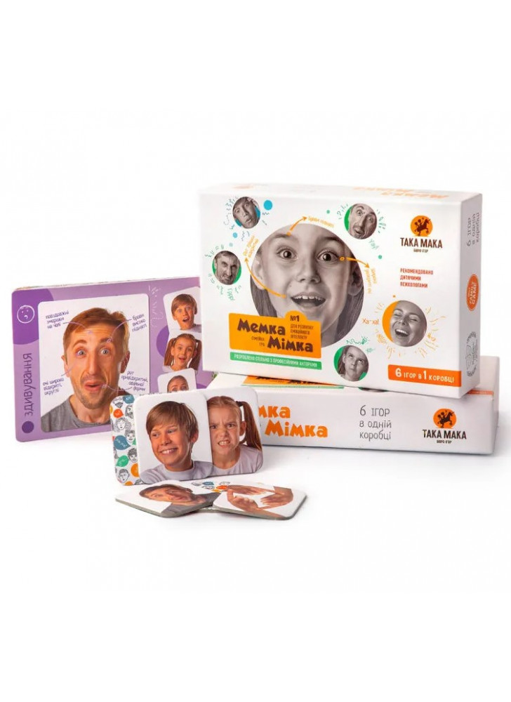 Мемка Мімка 2 -Розширена версія вже відомої настільної гри “Мемка Мімка”. Мемка Мімка 2 це гра на розвиток емоційного інтелекту. Більше емоцій, більше ігор – усе, щоб навчитись краще розпізнавати та розуміти емоції, збагатити словниковий запас, розвинути комунікативні навички, акторські здібності, фантазію та вміння висловлювати свою думку. У коробці є вісім ігор, які розвивають також і пам’ять, почуття гумору, фантазію та гарантують вечір розваг та сміху для малої і великої компанії без обмежень у віці.