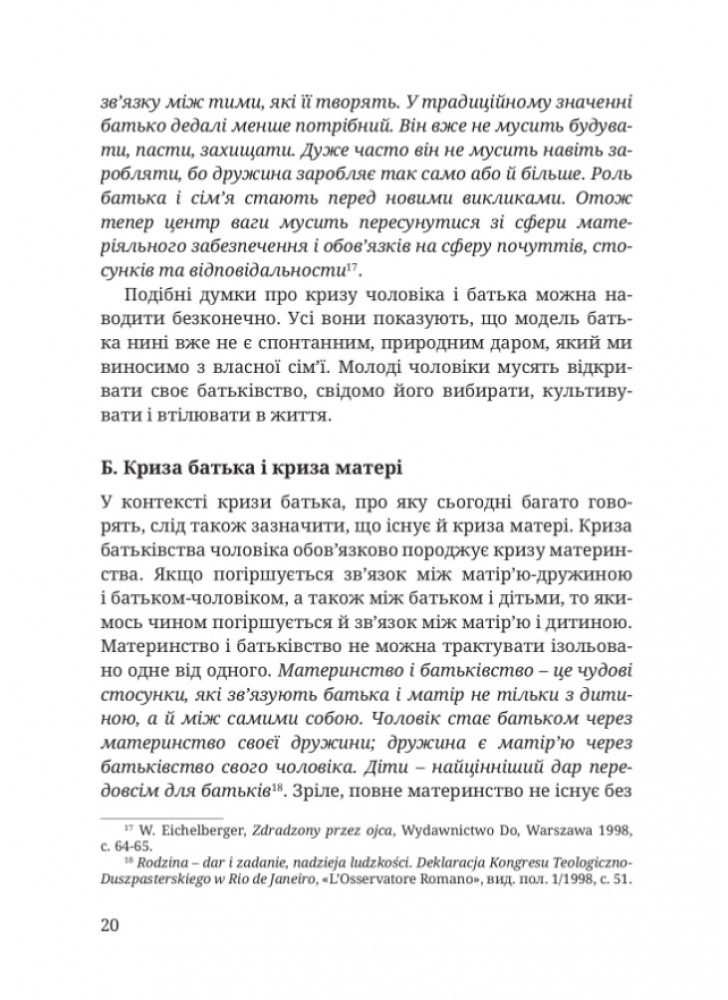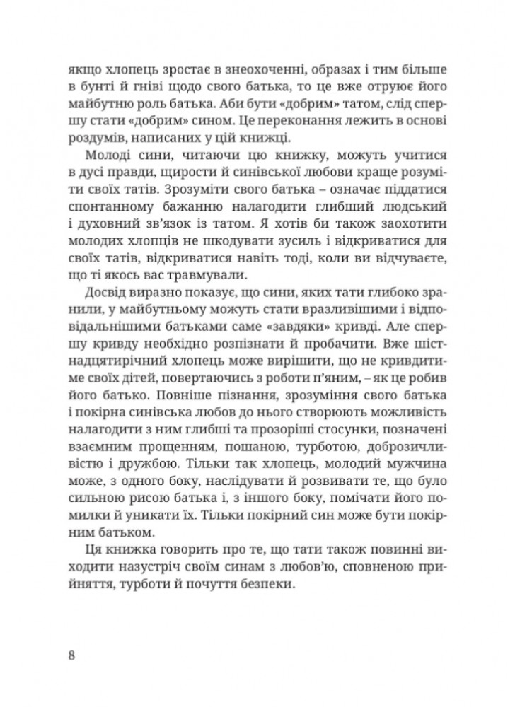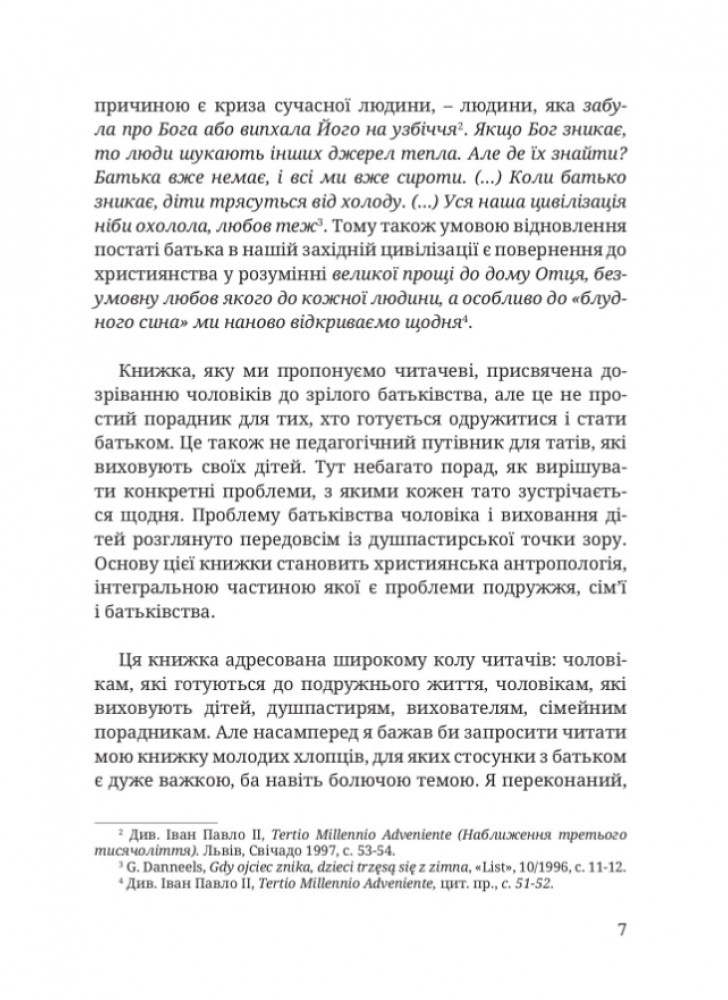 Ця книжка адресована чоловікам: тим, які готуються до подружнього життя; які виховують дітей; душпастирям; вихователям; синам, які хочуть зрозуміти своїх батьків, а також жінкам і дівчатам, які прагнуть зрілих стосунків в сім'ї. Юзеф Августин - монах-єзуїт, автор багатьох книжок зі сфери духовного життя та християнської педагогіки.