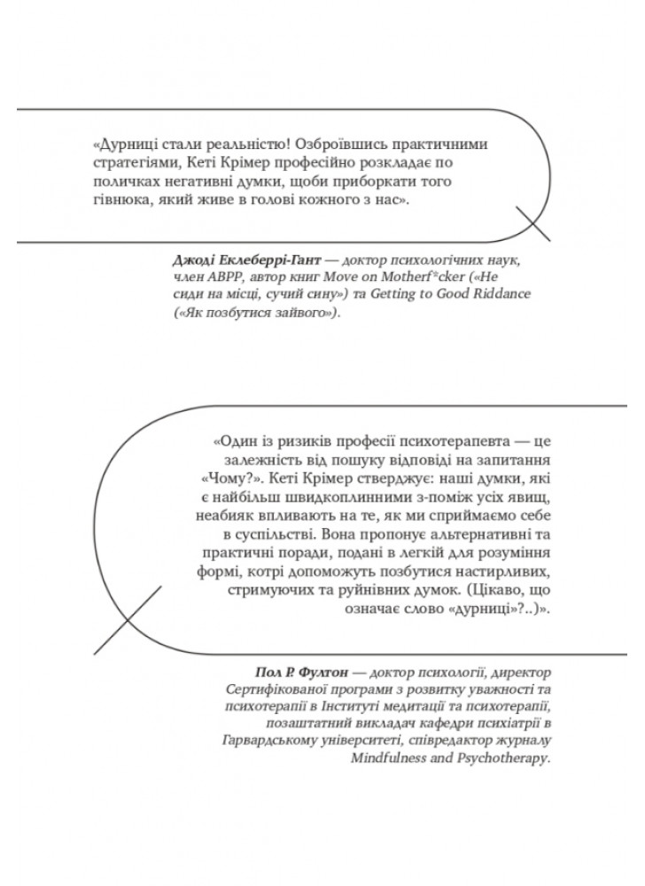 Настав час покласти край потокам нечистот у власній голові! Книжка стане в пригоді всім, хто цікавиться проблематикою саморозвитку, прагне здобути внутрішню гармонію і потребує професійних підходів на цьому шляху.