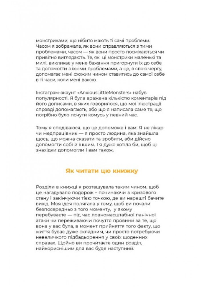 Ця дружня книжечка про тривогу, яка містить милі ілюстрації монстрів, афірмації та підбадьорення для тих, хто стикається з проблемами психічного здоров’я. Протиотрута для суспільства, пройнятого самотністю. Незважаючи на те, що розвиток технологій дозволив людям спілкуватися такими способами, які колись були неймовірними, ми самотніші, ніж будь-коли.
