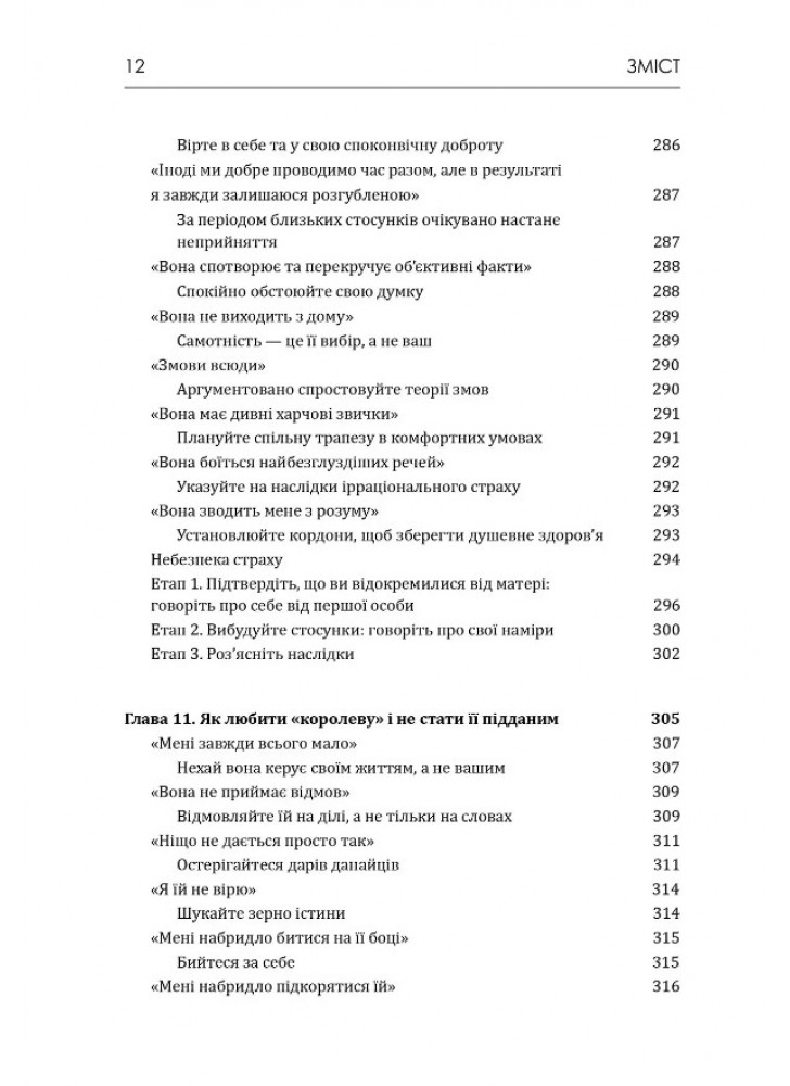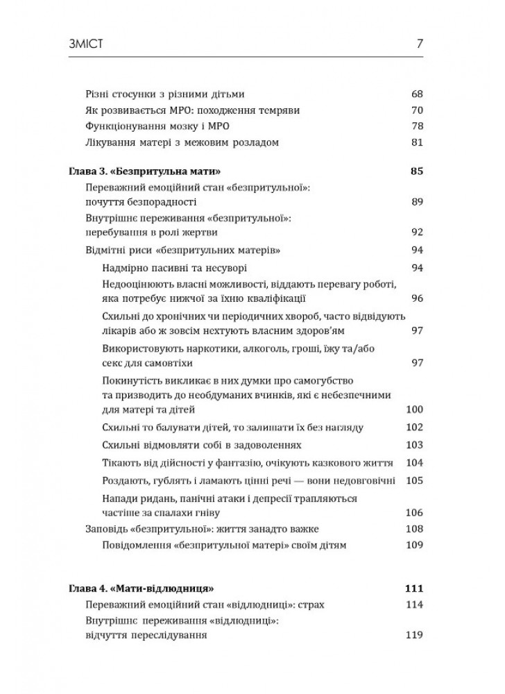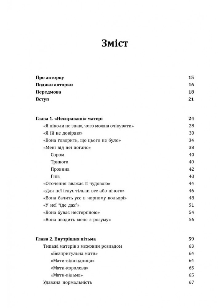 Книга описує чотири типи поведінки мам з межовим розладом психіки: «безпритульница», «відлюдниця», «королева», «відьма». Дізнайтеся, як протистояти мамі певного типу і перестати бути жертвою її травмованої особистості.