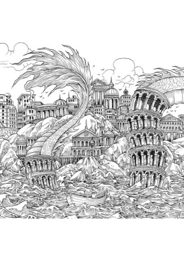 Зітріть кордони між світами, між фантазією і реальністю, минулим і сучасним! Розфарбуйте вигадливі ілюстрації художника Кербі Розанеса і знайдіть приховані ключі, які сторінка за сторінкою відкриватимуть для вас його нові творіння.