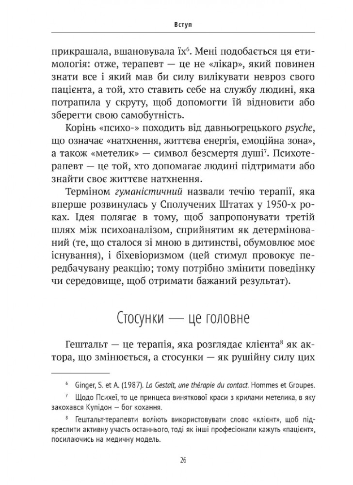 Він розповідає про те, як цей унікальний терапевтичний шлях розвивався поступово, завдяки перетину європейського екзистенціалізму з американським прагматизмом. Потім він чітко пояснює основні концепції, що лежать в основі цього підходу, ілюструючи їх численними клінічними прикладами, взятими з власного професійного досвіду.