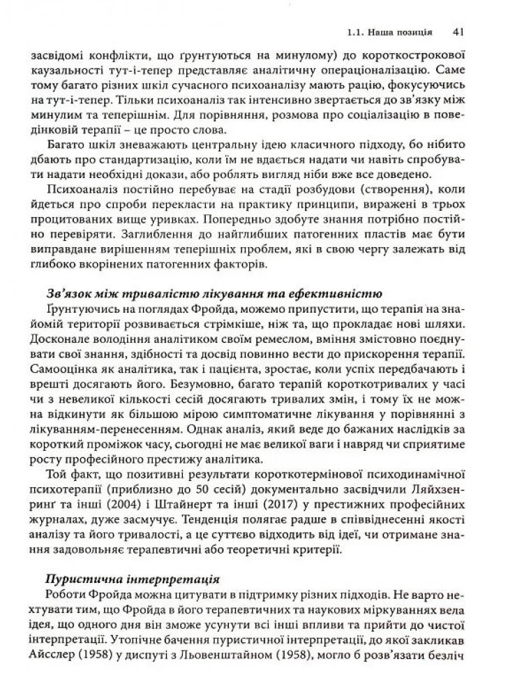 Найбільшим досягненням цього підручника є вичерпний огляд і вдумливий аналіз всього корпусу психоаналітичної теорії. Фокусом цієї праці є фундаментальні поняття психоаналізу — вільні асоціації, перенесення, контрперенесення та опір, а також психоаналітична техніка — від первинного інтерв’ю до завершення лікування та її наукове підґрунтя.
