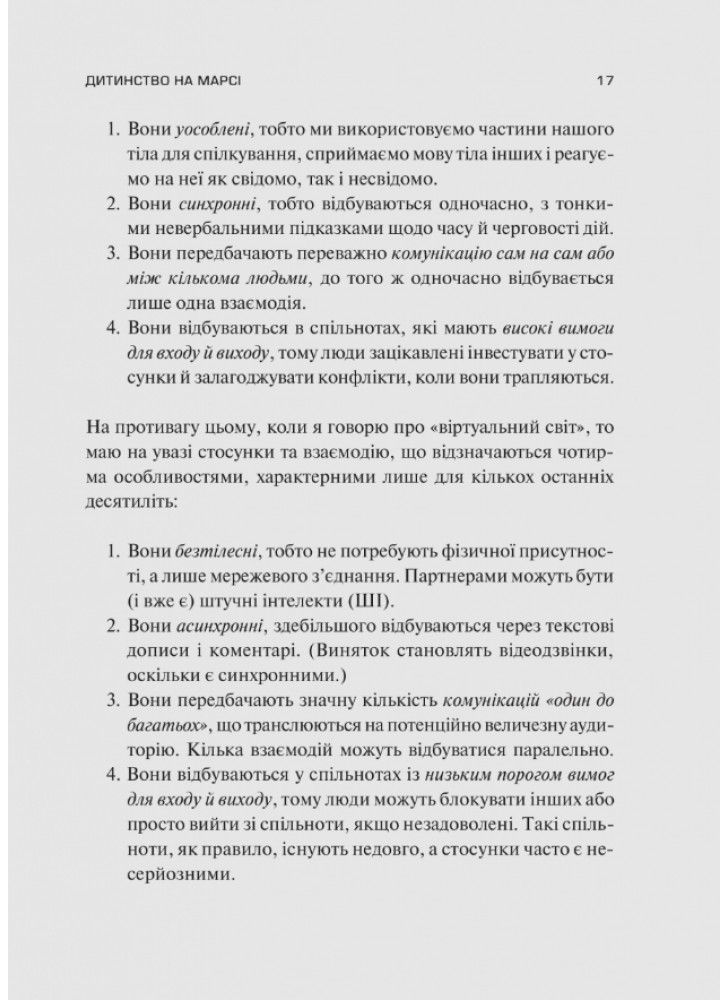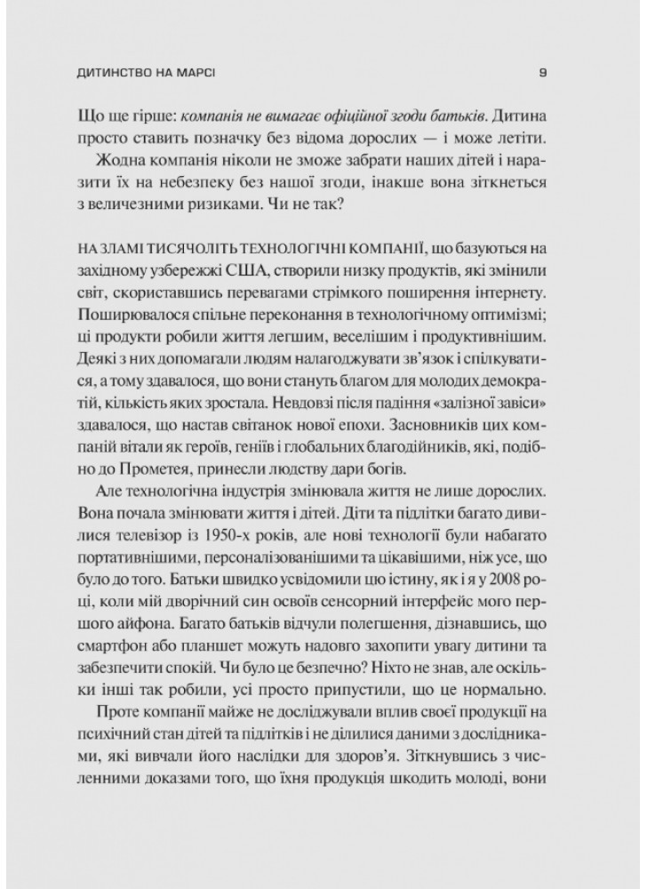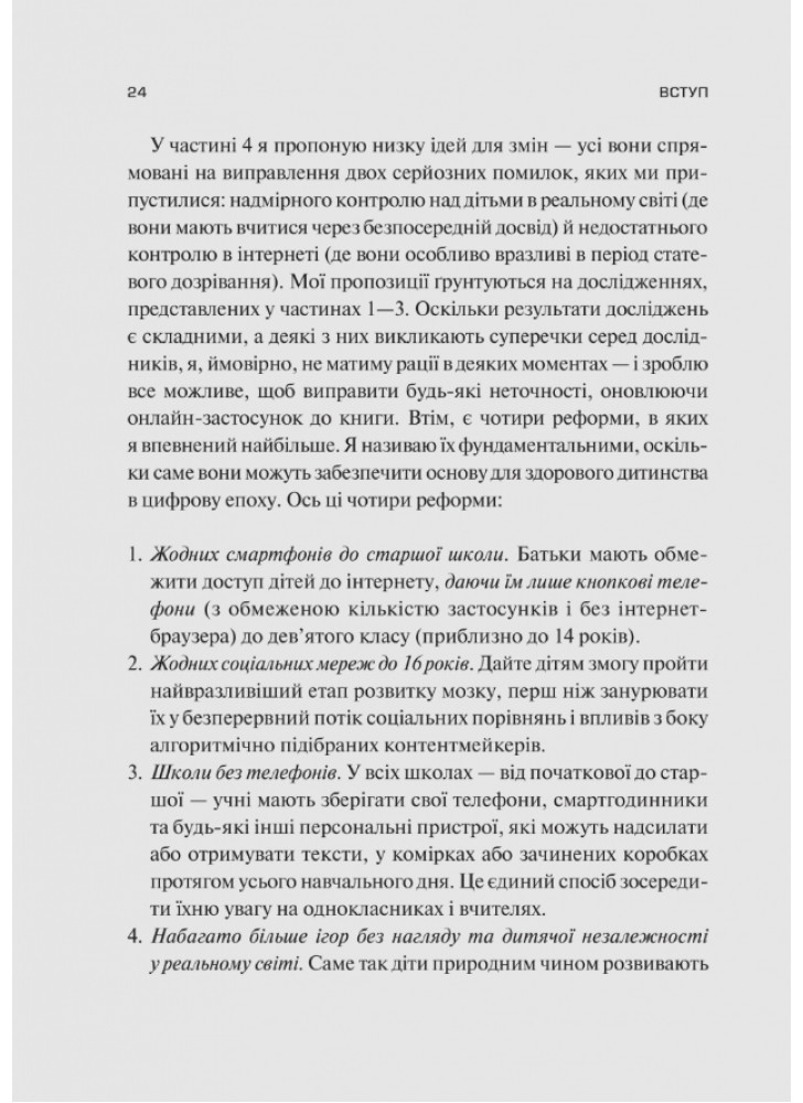 Також автор говорить про наслідки тривалого перебування в інтернет-середовищі та його втручання в соціальний і неврологічний розвиток дітей. Гайдт не обмежується викладом теоретичної інформації про загрози віртуального світу та механізми руйнівного впливу, а доповнює текст правилами для визволення та способами боротьби із залежністю від технологій.