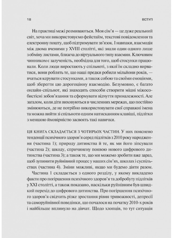 Книга «Тривожне покоління» — це дослідження дорослішання в епоху сучасних технологій та переходу до «віртуального дитинства». Спираючись на результати численних наукових розвідок, американський соціальний психолог Джонатан Гайдт розповідає, як цифрове життя трансформувало процес становлення особистості.