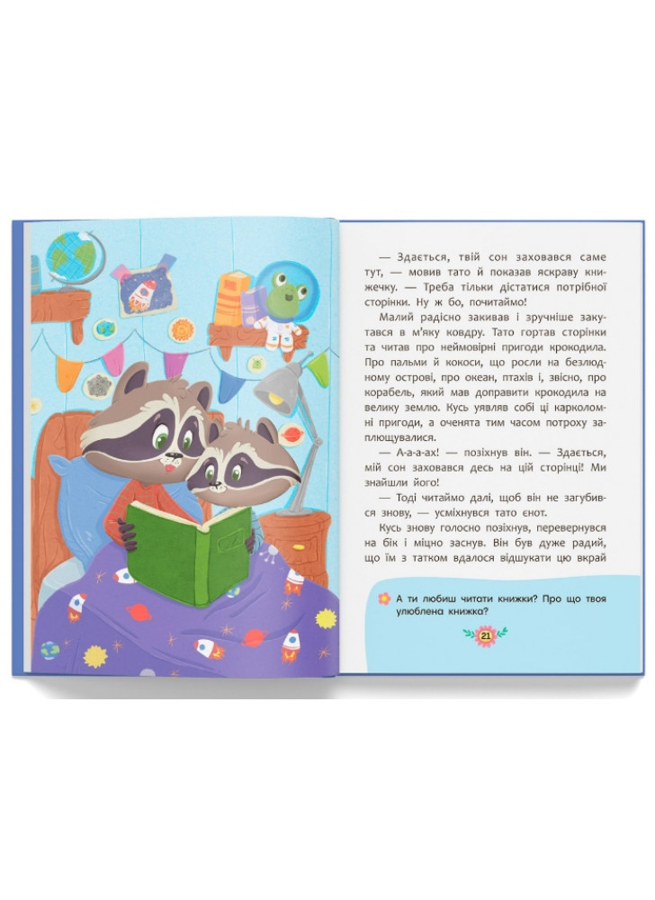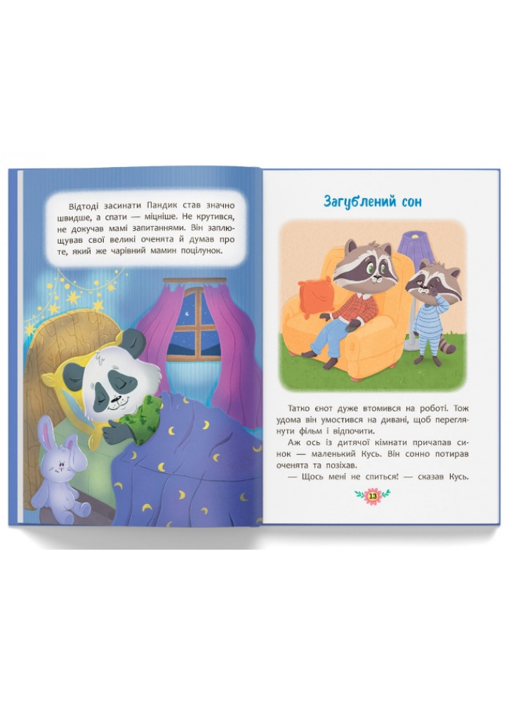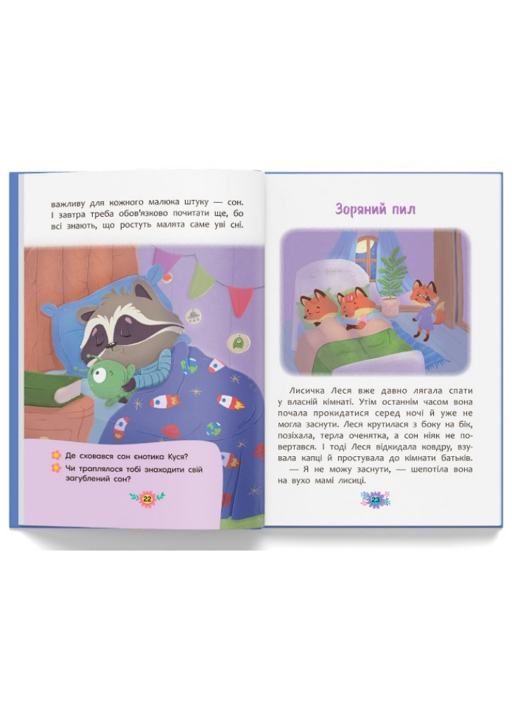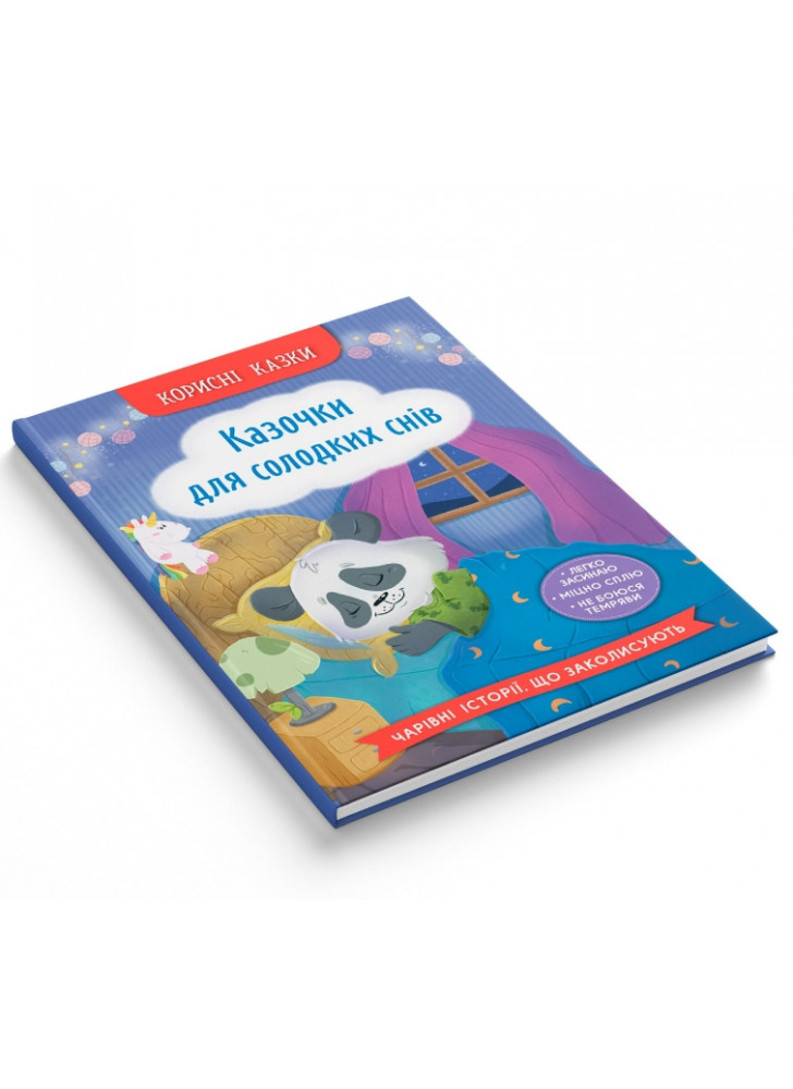 «Казочки для солодких снів» створено спеціально для читання перед сном. Малюк дізнається, як панденятко навчилося не вертітися в ліжку й почало легко засинати; де ховається загублений сон і як єнотик його шукав; як збирати зоряний пил і як він допоміг лисичці міцно спати вночі у власному ліжечку. Казки з чарівними ілюстраціями та затишними історіями допоможуть малюку розслабитися та зануритися в міцний сон.