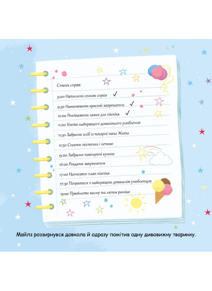 Познайомтеся з Которіжкою! Вона мила, пухнаста і НЕЙМОВІРНО непосидюча! Але принц Майлз не має часу на пустощі, адже він мусить влаштувати чарівний пікнік і прагне дотримуватися свого списку справ. Чи зможе Которіжка показати другу, що іноді найкраща розвага — незапланована? Захоплива історія про те, як раптові неприємності можна перетворити на веселощі!