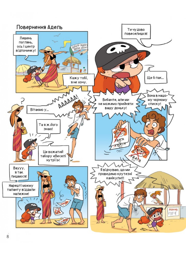 Адель точно не забыла упаковать все необходимое: солнцезащитные очки, шляпка, купальник… кое-что из новых изобретений и, конечно же, прихватила собственный пакостный нрав! У нее есть план, как сделать это путешествие незабываемым… Но, несмотря на то, что все предусмотрено, Адель неожиданно встречает давних знакомых — вожатых из летнего лагеря «Веселые нутрии»… которые сейчас руководят этим лагерем на пляже. Ох и КРУТЫМ же будет этот отдых!