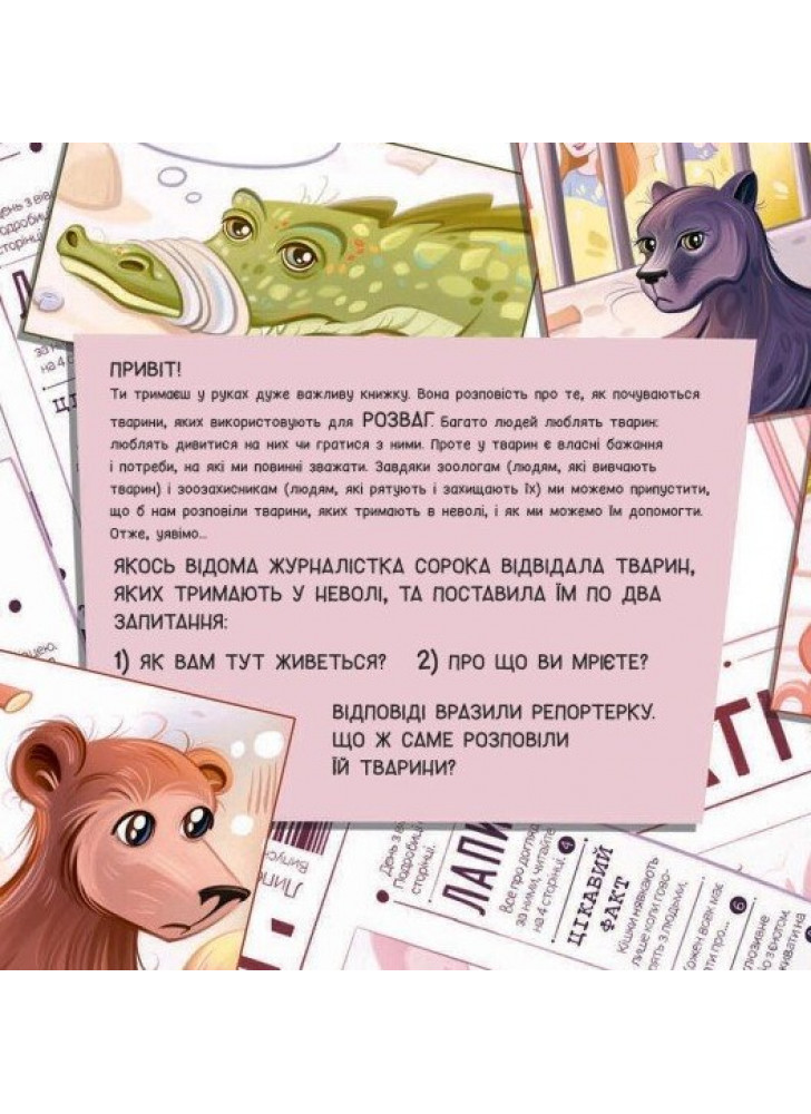 Книга содержит советы от организации UAnimals, чтобы малыши узнали, какие естественные потребности имеют животные и как каждый из нас может помочь тому, чтобы все они жили в безопасности.
