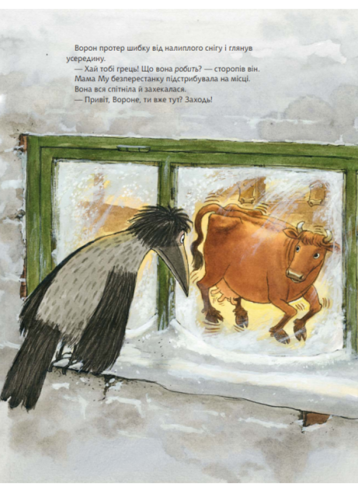 Веселая и изобретательная корова Мама Му не может спокойно выпасаться на лугу или качаться на качелях. Ведь ей так не терпится воплотить в жизнь самые причудливые идеи! Хорошо, что старый друг Ворон всегда охотно помогает ей! Ворон запрыгал по полу. Затем остановился перед Мамой Му.