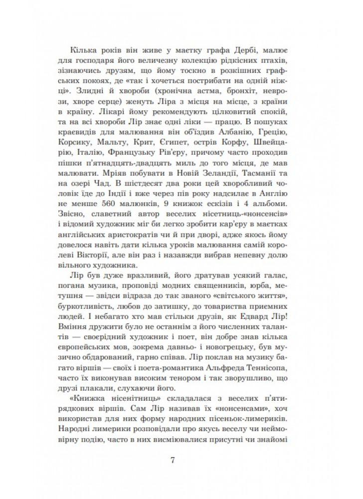 Работы Лира привлекли внимание лорда Стэнли, который пригласил его в свое имение Ноусли-холл, дабы запечатлеть свой домашний зверинец. В Ноусли-холле Лир провел пять лет, и именно там он, развлекая детей лорда, начал писать шутливые пятистишия – лимерики, которые и составили вышедшую в 1846 году его первую книгу, получившую название "Книга бессмыслиц" ("A Book Of Nonsense").