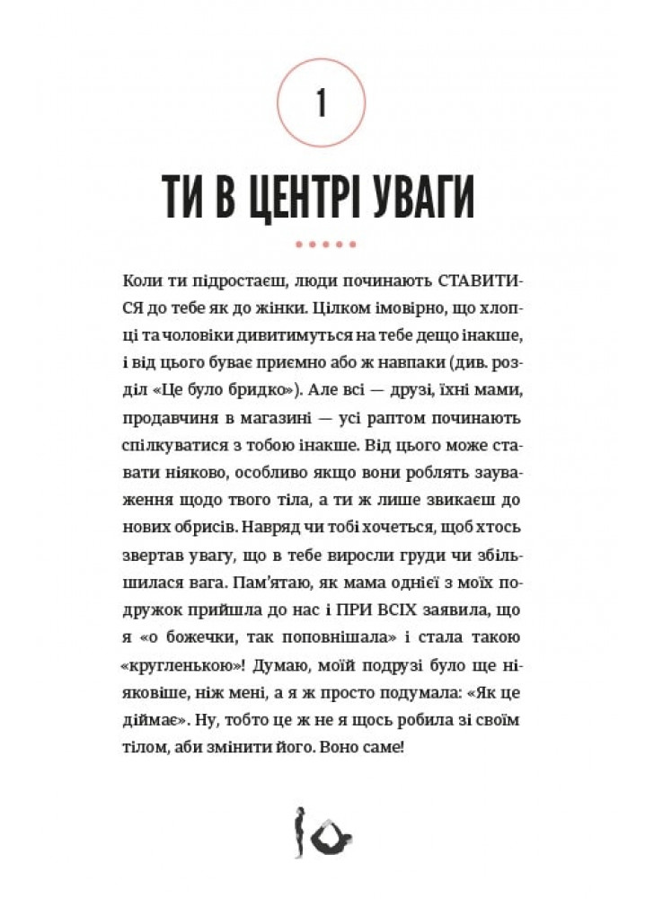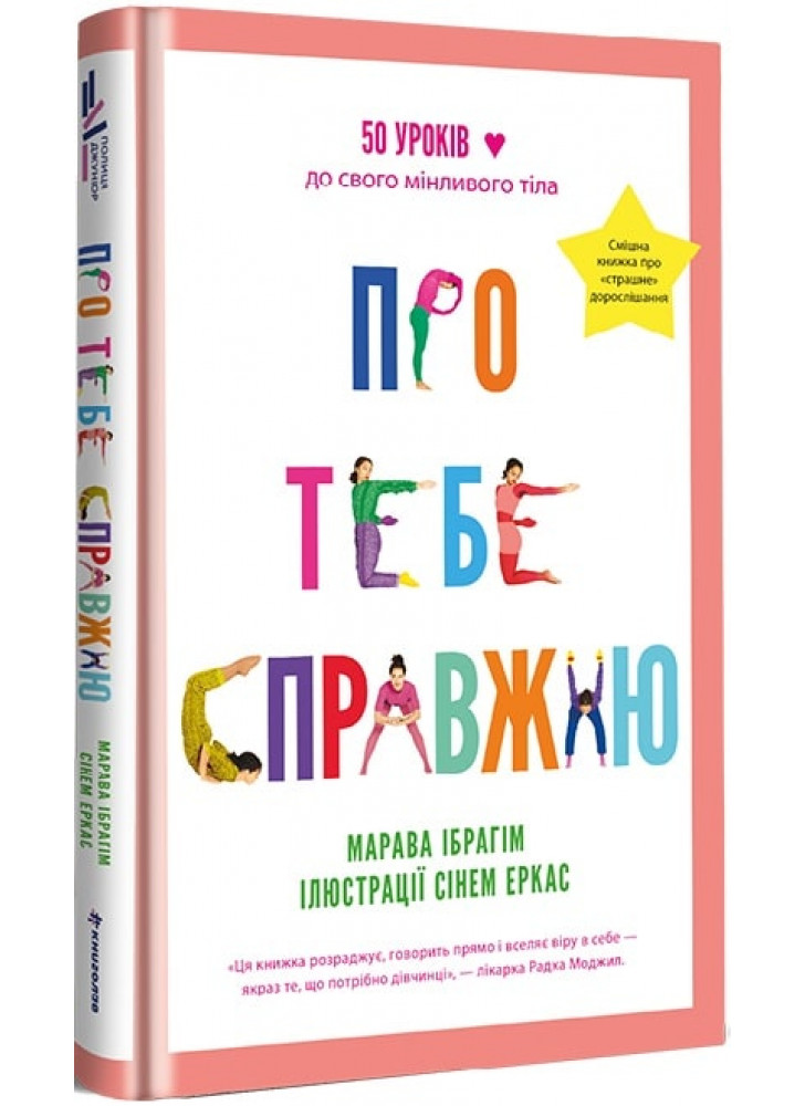 Нею може стати і книжка «Про тебе справжню». Це 50 ілюстрованих уроків з усвідомленого і щасливого дорослішання. Зокрема тут можна прочитати про те, як вибрати перший бюстгалетр, що варто знати про перше місячне, як доглядати за шкірою обличчя, як дати раду з надмірним потовиділенням, що робити, коли доводиться носити брекети, а ще, як харчуватись, як рухатись, скільки спати, про особисту гігієну, а ще про стосунки батьками у цей період, стосунки з друзями, як проявляти свої почуття і переживати, коли хтоcь не відповідає взаємністю, про гормони та емоційний інтелект і як з гумором ставитись до неприємностей, які зі всіма трапляються.