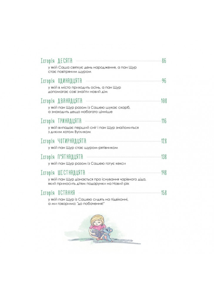 А еще господин Щур познакомится с удивительными созданиями: летучим мышиком Молнией, жителем пекарни, и старой совой, которая живет в дупле многолетнего дуба. Господин Щур будет спасать дикого кота Углика и летать на воздушных шарах. И куда бы он ни пошел и что бы ни придумал, с ним всегда рядом его лучшая подружка – маленькая девочка Саша.