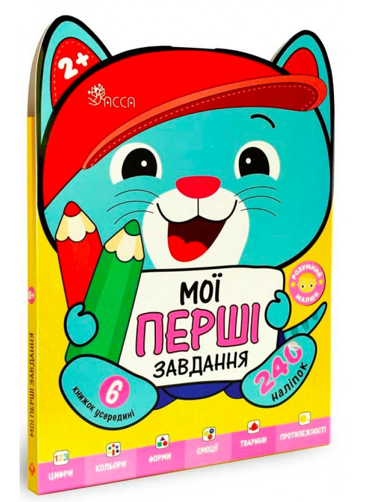 Разом із головним героєм цих видань — кумедним кошеням — малеча буде виконувати цікаві завдання, створені спеціально для її віку: розфарбовуватиме прості малюнки, клеїтиме наліпки та, звісно, вчитиметься лічити, розпізнавати кольори, фігури, емоції, тварин та порівнювати предмети, розвиватиме логіку, увагу та дрібну моторику.