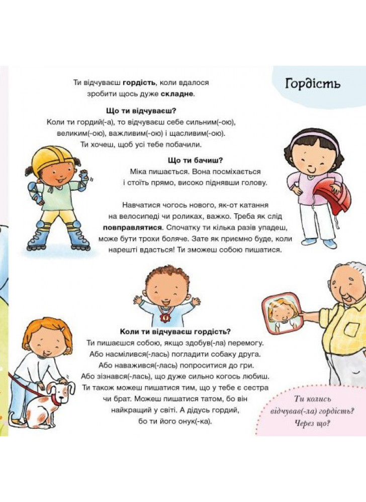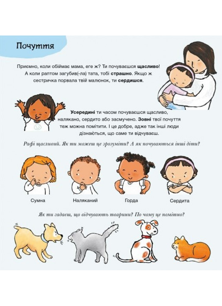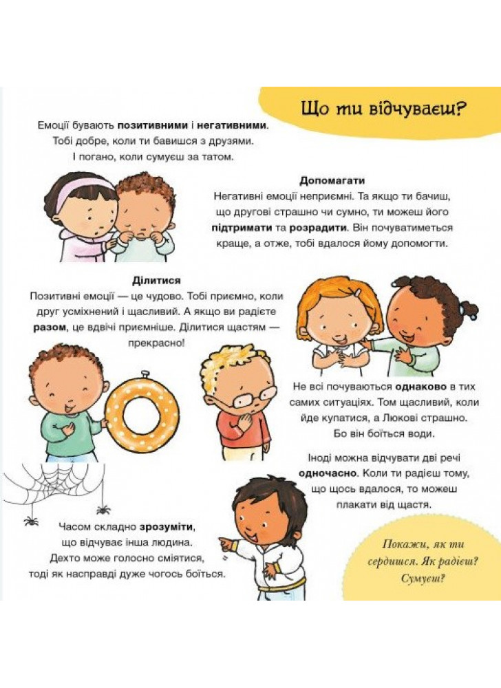 Что ты чувствуешь? Кто-то еще чувствуешь себя так же? Какими словами можно объяснить эти чувства? Прекрасно, если тебе удается рассказать, почему ты боишься, сердишься или радуешься! И хорошо, если ты можешь помочь еще кому-то, кто в этом нуждается. Очень важно понимать собственные эмоции и эмоции других людей для здорового взросления и развития.
