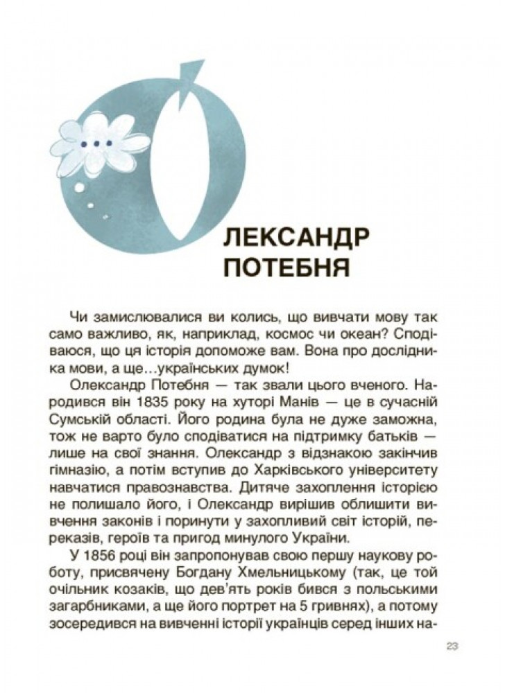 Истории побуждают детей быть образованными украинцами и украинками, получать новые знания разных наук и истории Украины, способствуют выбору профессии. Материал изложен в форме живого разговора автора с юным читателем.