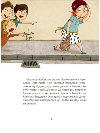 У Фредерики – огненно-красные волосы. Она вполне нормальная девочка, по крайней мере так считают тета Анета и кот Котысько. Однако все остальные насмехаются над ней. Особенно дети! Они восклицают: «Взгляните-ка, кто идет — огневолосая Фредерика! Огонь! Огонь! У нее на голове пылает огонь! Внимание, приближается пламенная!»