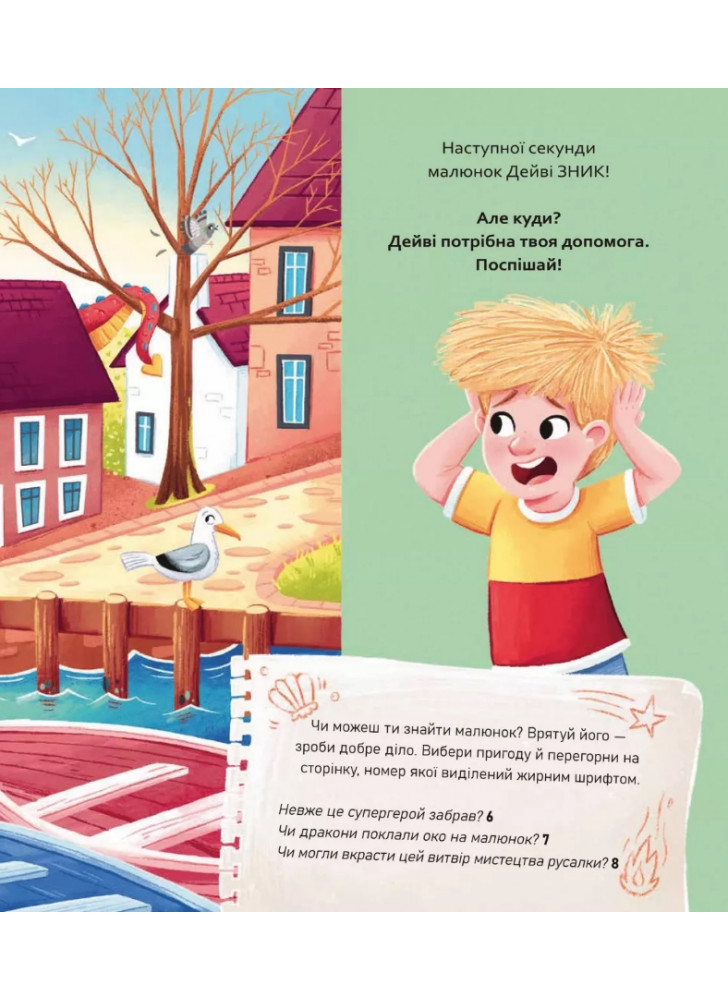 Поблизу відчувалися чари русалок, драконячий хвіст виднівся на стовбурі дерева, а в небі з'явився супергерой! Важко не задивитись на таку чудасію, а тому Дейві розглядав все навколо й рисунок кудись зник. Хто ж забрав собі малюнок хлопчика? Русалонькам закортіло мати красу дитячого мистецтва у водних глибинах? Можливо, дракони вшановують талант Дейві, а що як справжнісінький супергерой братиме «велосипед» героя в найнебезпечніші місії?