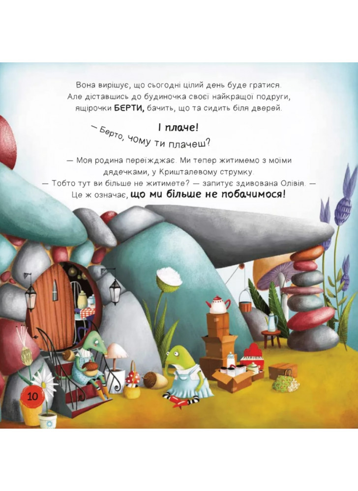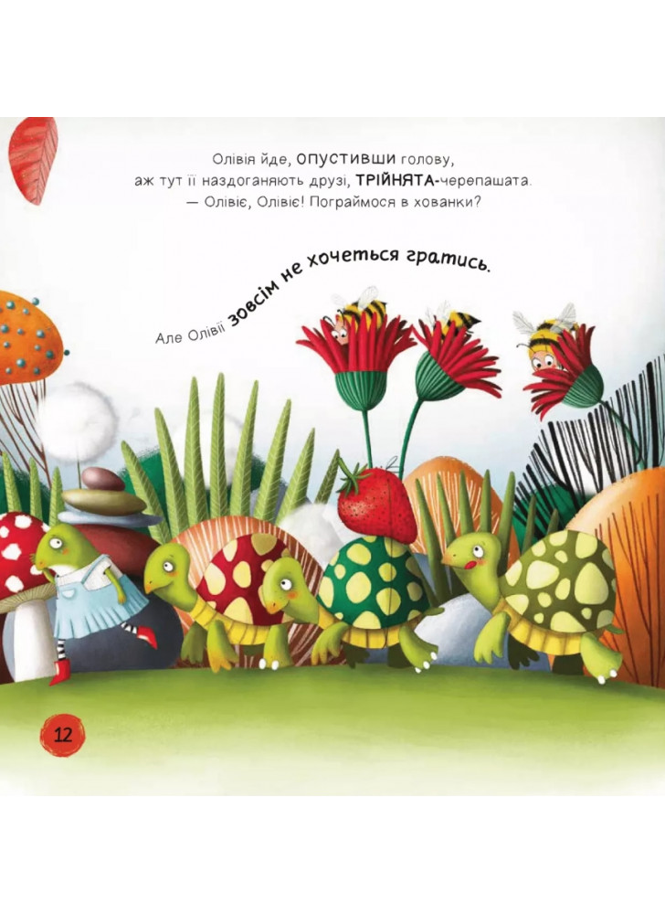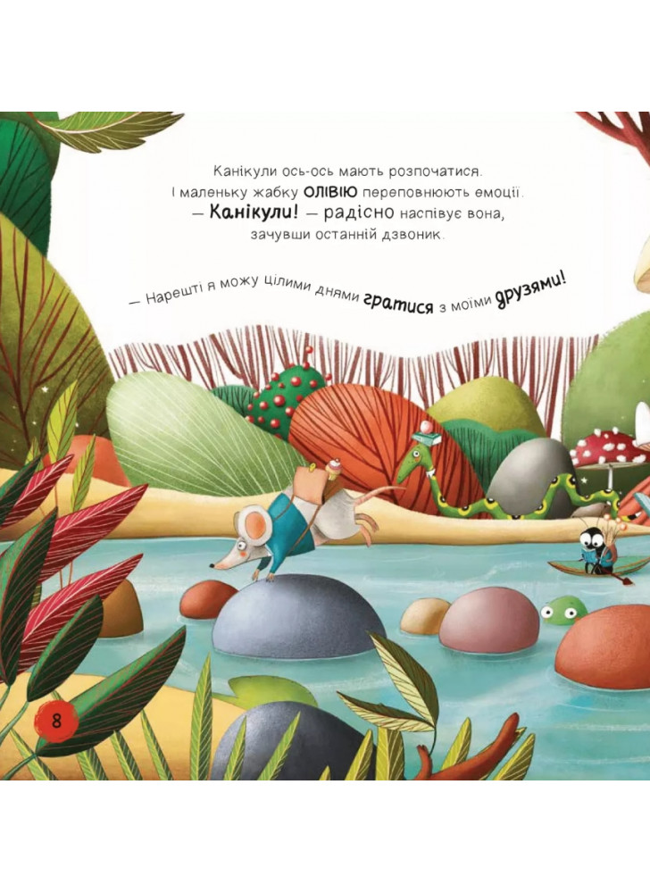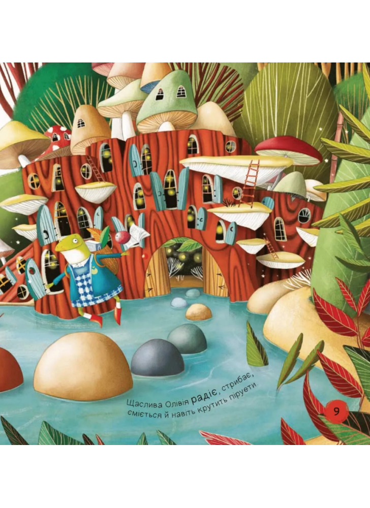 Дитяча книга містить три повчальні історії, що написані сучасними італійськими авторами — Аною Серною та Енаром Ініґо — й проілюстровані художницею Касандрою. Жабка Олівія переконана: кожен інколи постає перед труднощами й потребує допомоги з контролем своїх негативних емоцій та почуттів, і вона сама не є винятком! Так, Олівія дуже мудра маленька жабка, але навіть із нею трапляються неприємні ситуації, які гнітять і збурюють зсередини.