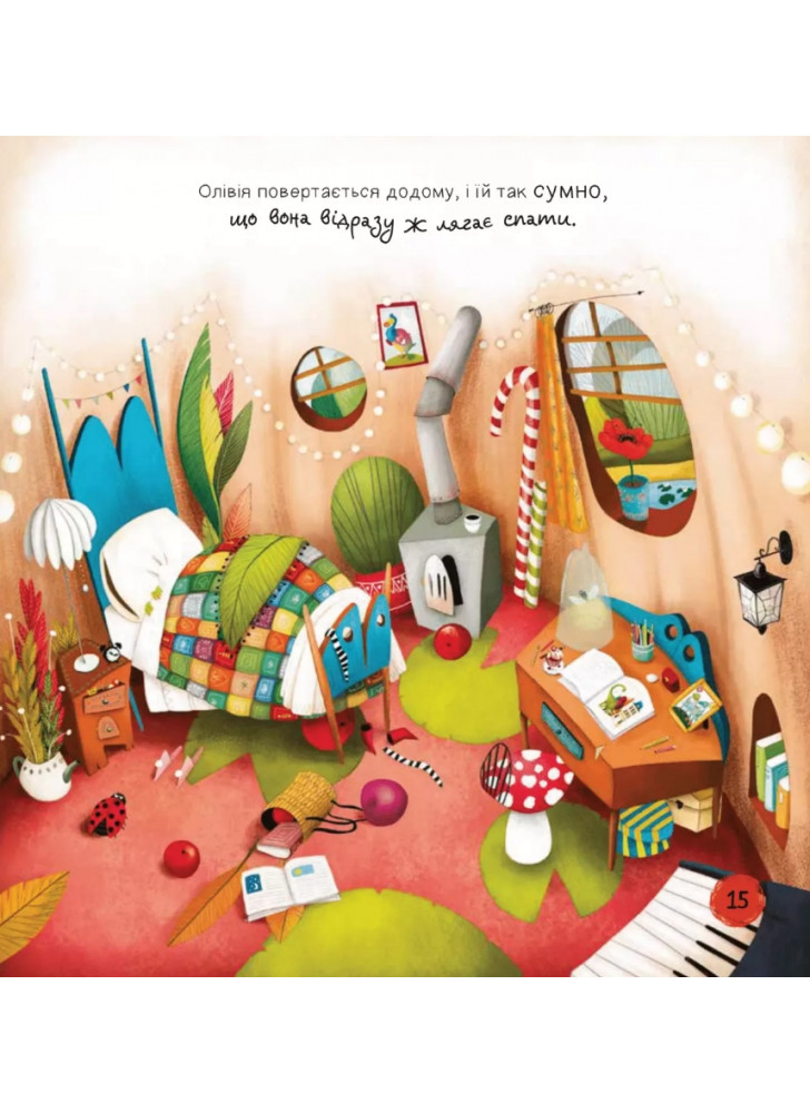 Героїня на власному життєвому досвіді розповість, як мало не потрапила в пастку смутку, злості й самотності, та хто врятував її з біди. У книжці з ілюстраціями митці фокусуються на створенні історії через яскравий малюнок, відтак текст лише розкриває візуальний наратив. Під обкладинкою українського видання зібрано три книги від італійського колективу авторів.