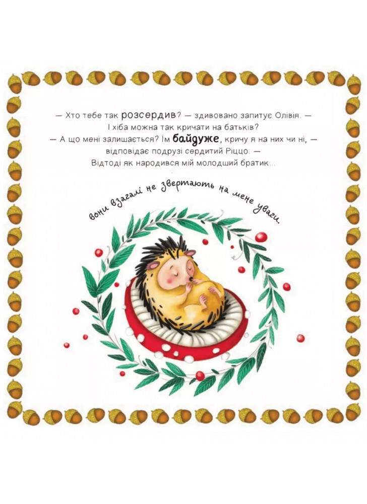 Жабка говорить їжачку, що прийняття нового члена родини буває складним процесом, але в ньому потрібно шукати позитив. Про Ріццо не забули, просто немовлятко потребує трохи більше уваги. Аналізуючи досвід Ріццо, героїня розповідає про важливість взаєморозуміння й підтримки в родині. Олівія наводить безліч аргументів щодо руйнівного впливу ревнощів і своїми діями показує, як не стати заручником заздрості.