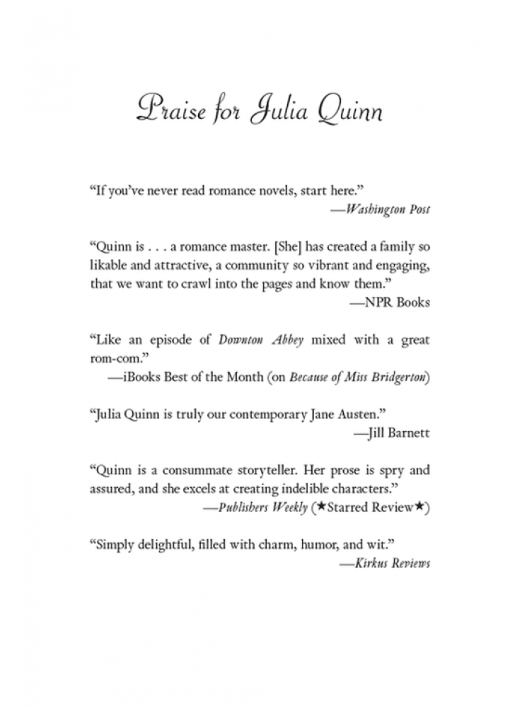 Джулія Поттінгер, більш відома під псевдонімом Джулія Куїнн — авторка бестселерів №1 за версією New York Times. Джулія любить розвіювати міфи про те, що розумні жінки не читають (або не пишуть) любовні романи, і в 2001 році вона зробила це з розмахом, з'явившись у відеоігорному шоу «Найслабша ланка» та вигравши джекпот у 79 000 доларів.