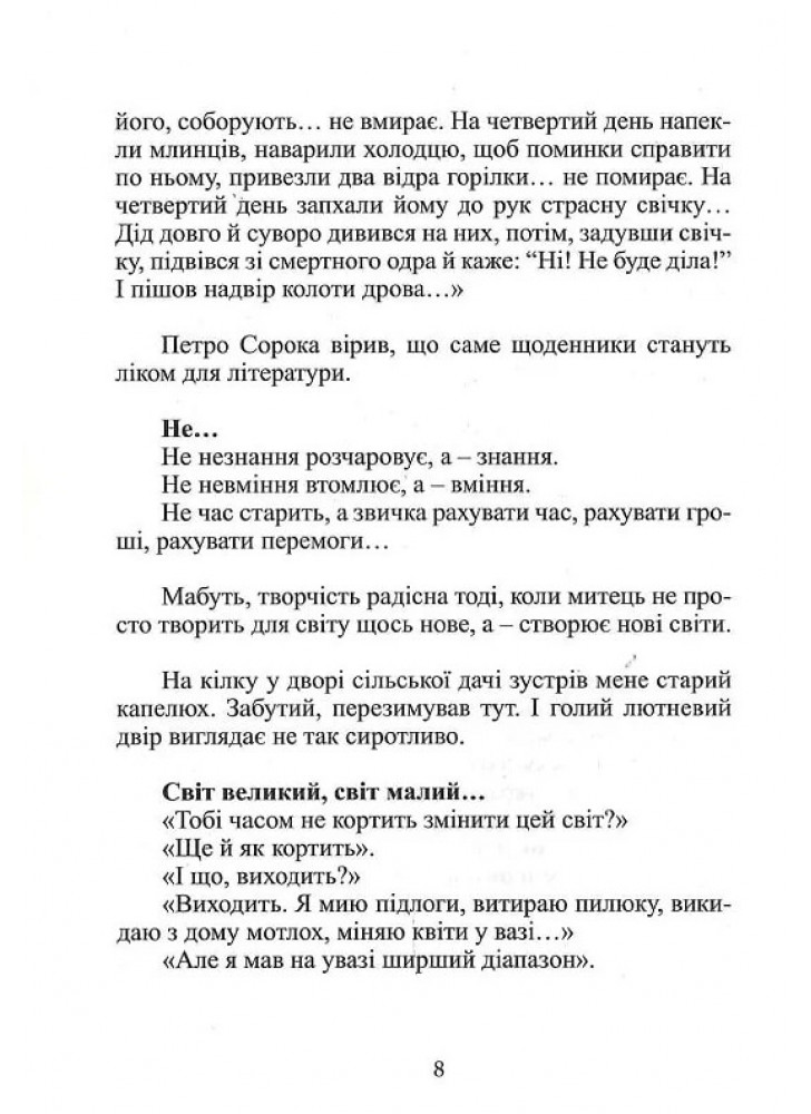 Люди тайком мечтают о вечности. Люди веером листают эпохи. Люди грустно считают годы. Люди взглядом провожают месяцы. Люди отмечают дни рождения... И проходят бегущие дни – эти ячейки Времени, налитые медом радости Присутствия, вином Опытности, напитком тайны Причастности. Об этом книга откровений Мирослава Дочинца.