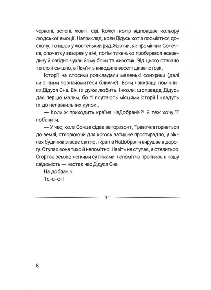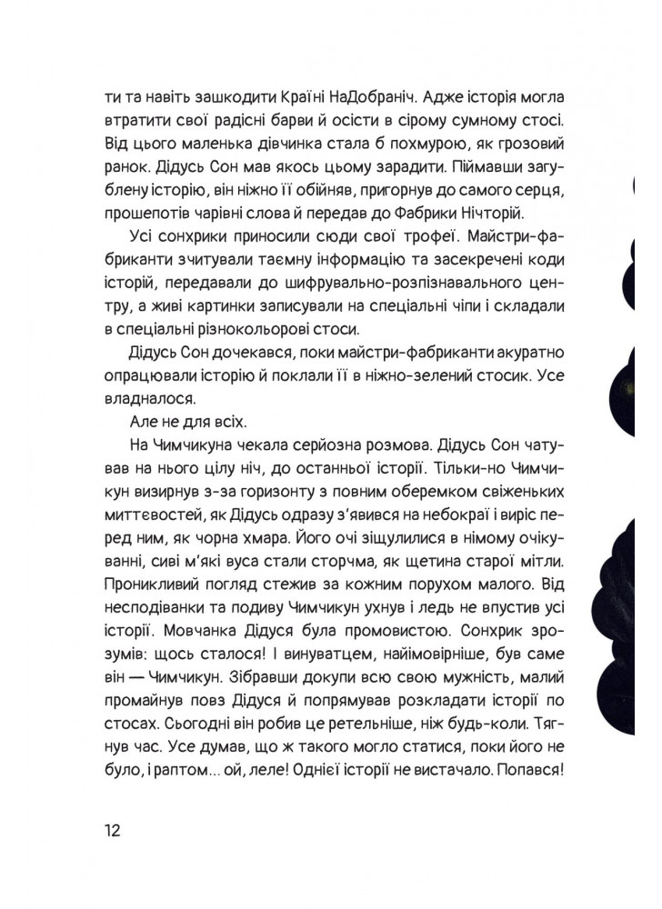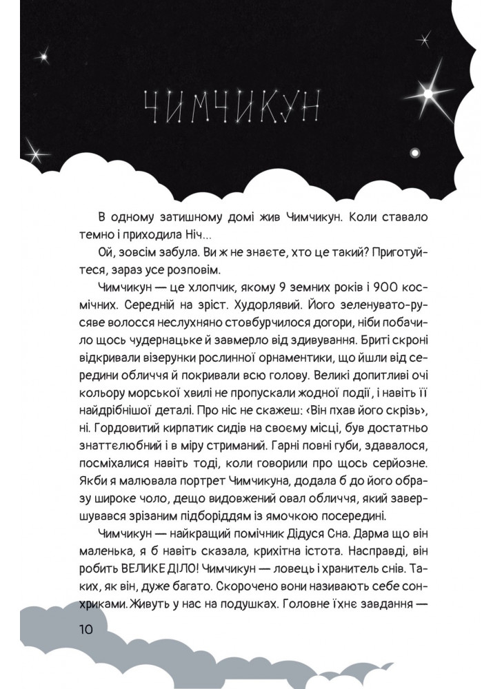 К счастью, есть Страна На Спокойной ночи, в которой живет великий мечтатель Чимчикун, герой этой книги, он знает, как отпереть замки, снять тяжелые засовы и открыть сундуки человеческого мира. Отправляйтесь в путешествие с Чимчикуном, но берегитесь, рядом подстерегает страшный волшебник Мрак.