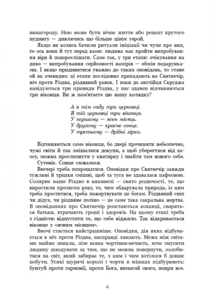 Тут своєю творчістю діляться О. Генрі Гі де Мопассан, Чарльз Дікенс і Сельма Лаґерлеф, Михайло Коцюбинський і Олена Пчілка, Дара Корній і Олексій Жупанський, Остап Українець і Катерина Пекур та ще ціла низка самобутніх авторів і авторок. Моторошне фентезі й тонкий реалізм, і постмодернізм, і темний романтизм, і… трішки різдвяного сміху, що дзвенить у морозному повітрі. Зазирайте у віконця цієї збірки — і відкривайте для себе містичний час різдвяних свят та настання нового року.