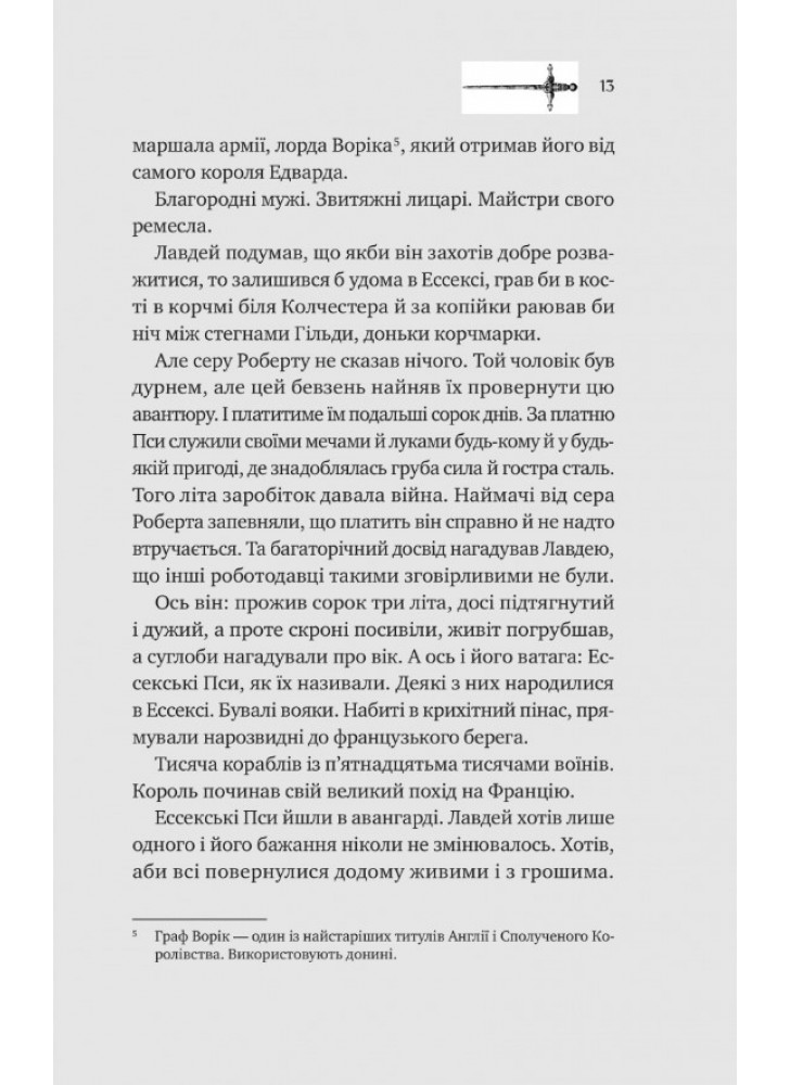 В ваших руках взрывной, искусно построенный роман о мужчинах, связанных узами братства, о дружбе, рыцарстве и жестокости великих королей. Июль, 1346 год. Десять видавших виды солдат пересекают границы английских вод и высаживаются у берегов Нормандии. Они называют себя Эссекскими Псами, ведь большинство из них родилось в Эссексе.
