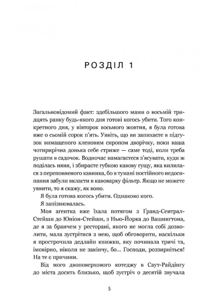 Книжка стрімка, вишукано дотепна, щиросердно правдива в зображенні розчарувань і тріумфів материнства, а також сповнена безладних і кумедних моментів.