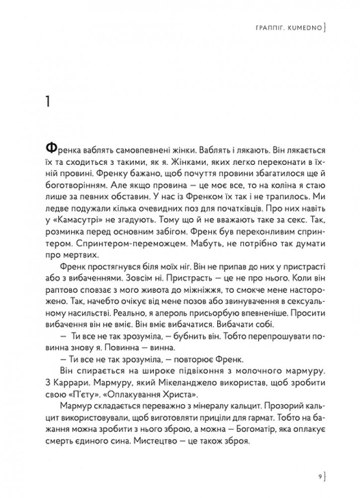 Она смотрит на мертвое тело своего любовника, а мы думаем: это она его убила или кто? Она преследует бельгийскую полицию, бельгийская полиция преследует ее. Она бродит по Бельгии и вспоминает родной Херсон. Она не стесняется удовольствия ни в еде, ни в сексе. Она, как и все украинки, научилась терять, но в то же время она, как и все украинки, знает цену свободы и то, что обидчики должны быть наказаны.