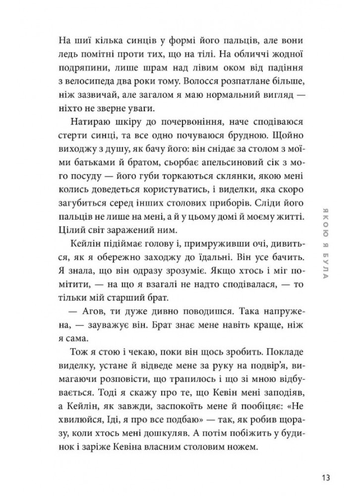 Провокативный ангелдалт-дебют о травме и взрослении. Иден хотела бы отмотать время вспять и прожить тот день снова. Тогда она бы все сделала иначе: не реагировала бы на его шутки, не игнорировала бы странные взгляды. И точно заперла бы дверь. Но времени не вернешь. Поэтому Иден прячет правду, а с ней и себя, какой была прежде.