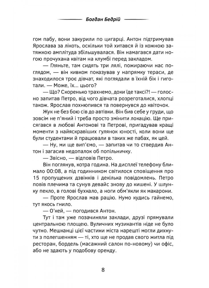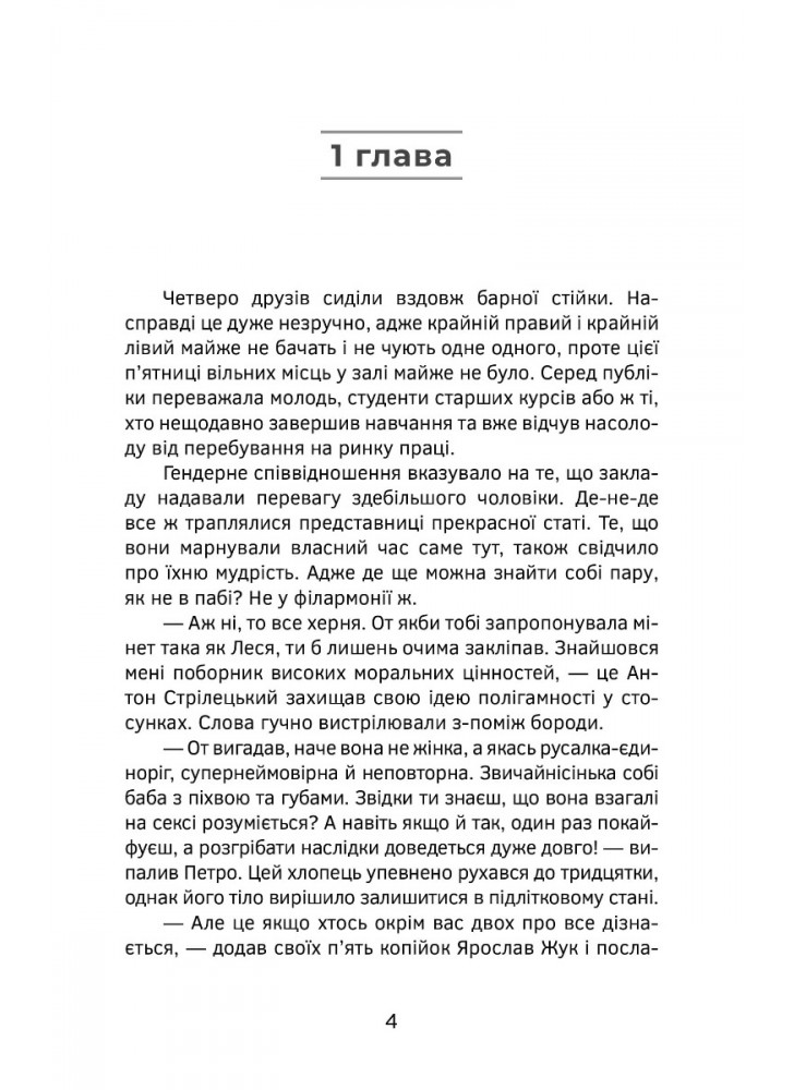 Этот роман - не для рафинированного целомудрия читателя, который существует вне пространства и времени, а для тех, кто воспринимает настоящее без показательной заангажированности. Непредсказуемость сюжета сразу увлекает, вовлекая в жизнь типичных представителей львовского социума, где ирреальное преподносится на фоне обыденности.