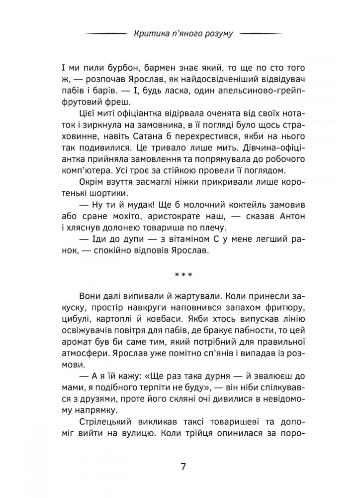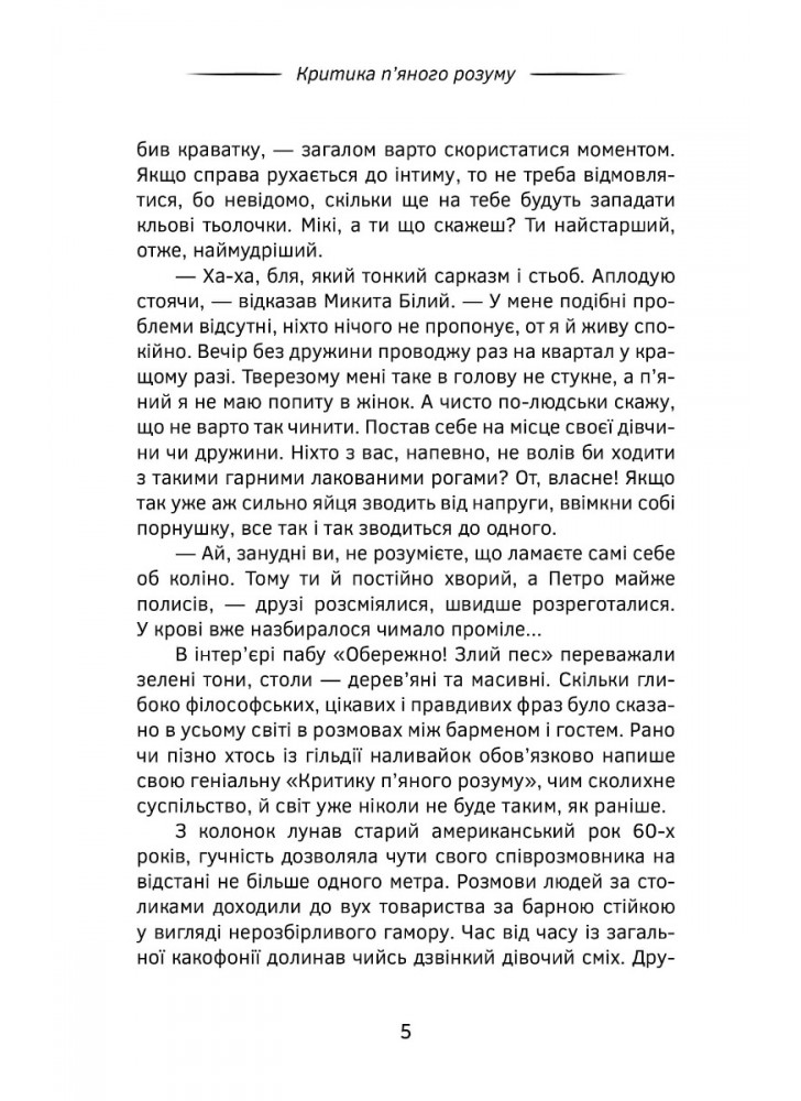 Петр, Антон и остальные представители «гильдии наливаек» сквозь призму «Пьяного разума» - это неповторимые характеры наших современников, в каком бы абсурдном мире они не существовали. Развитие сюжетных линий на грани фантазии и действительности держит читателя в напряжении в атмосфере знакомой нам «барной культуры» с «ароматом свежемолотого кофе» и, конечно же, алкоголя, который «обладает интересной суперсилой: хорошее настроение превращать в эйфорию».