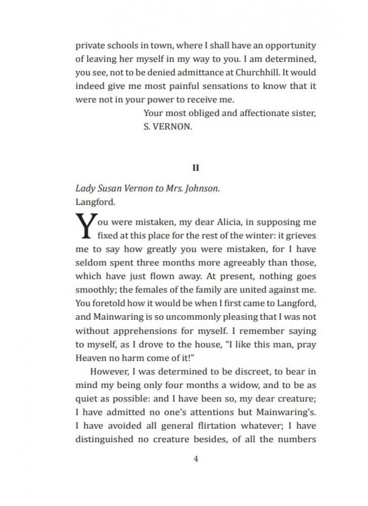 Джейн Остін (1775—1817) і досі по праву вважається «першою леді» англійської літератури. Її «романи звичаїв» підкоряють ось уже третє століття щирістю, тонким психологізмом, істинно англійським гумором і є обов’язковими для вивчення в коледжах і університетах Великої Британії.