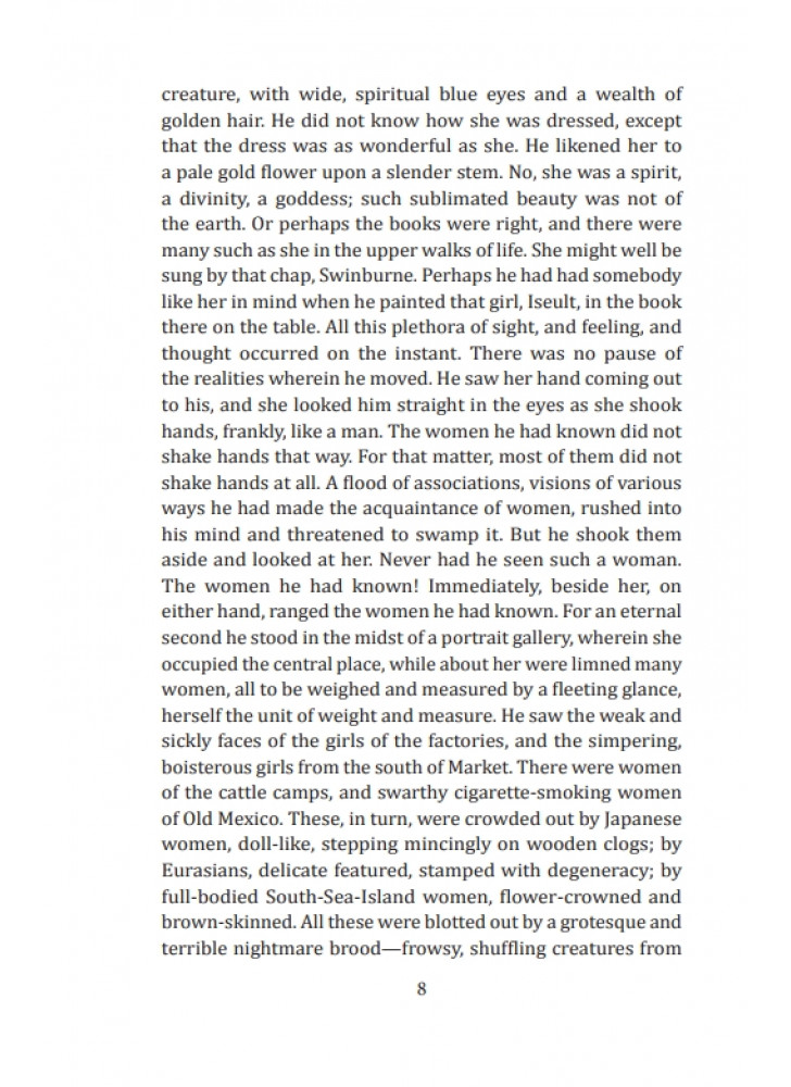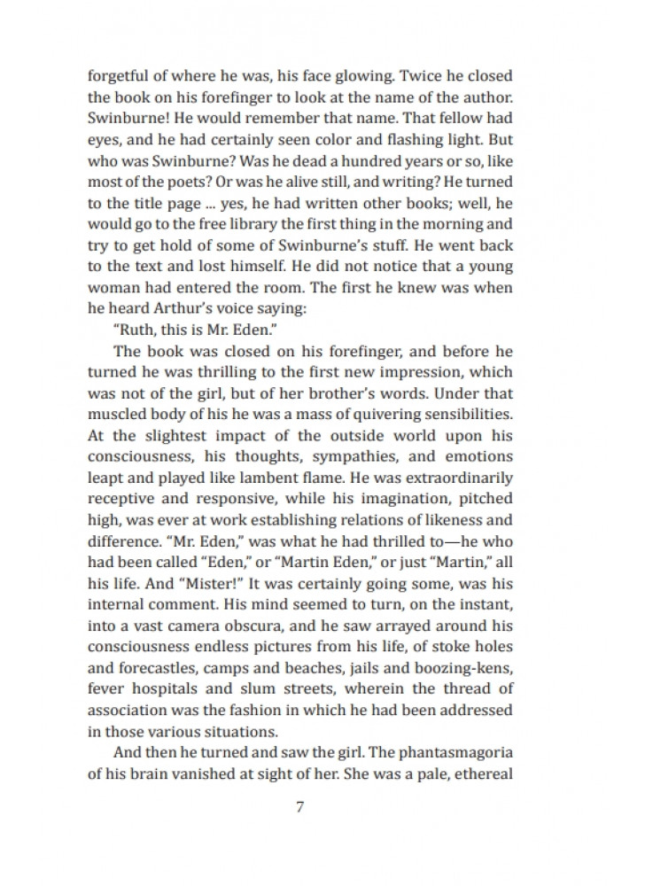 «Martin Eden» is a novel by the American writer Jack London (1876—1916). It is about a young sailor who falls in love with a girl from a wealthy family. The hero of the work is trying to become a writer in order to find his own place in life. The work is, in a sense, autobiographical.
