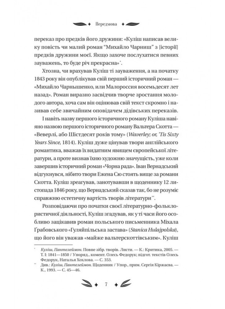 Книгу «Михаил Чарнышенко» Пантелеймон Кулиш начал писать еще до работы над «Черным советом», в 1840-х годах, когда преподавал в Луцком училище. Библиотека учебного заведения сохранила произведения английского романтика Вальтера Скотта, вдохновившие будущего украинского классика для создания собственного наследия.