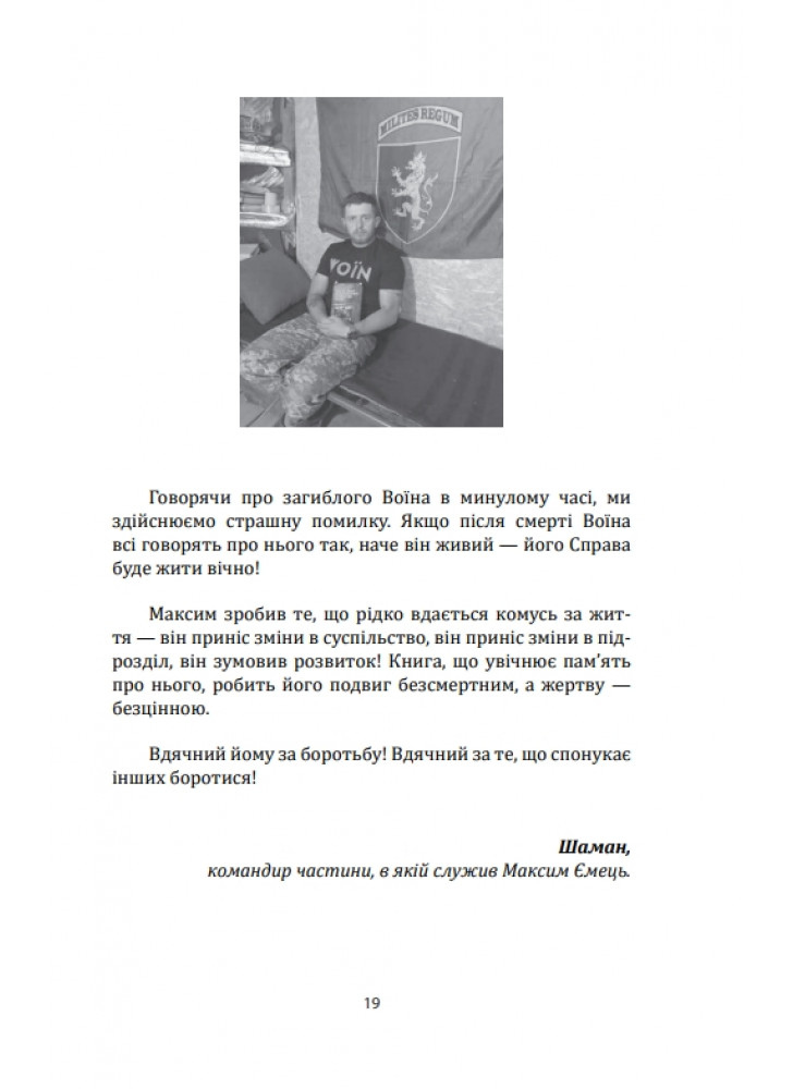 Водночас в них знайшло своє місце і те, що допомагає залишатися людьми навіть у найважчі часи, — любов. Любов на війні — це особливе випробування. Тут переплітаються мої особисті переживання та спогади, а також життєві історії й почуття моїх побратимів, накопичені протягом крайніх десяти років. Вірші частково автобіографічні, вони відображають пережите, побачене і відчуте. Впевнений, ці вірші знайдуть місце у вашому серці».
