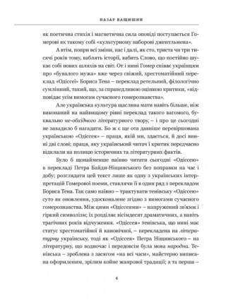 Гомерова «Одиссея» в переводе Петра Байды-Нищинского (1832–1896) впервые увидела свет более ста лет назад. Но с течением времени этот шедевр украинского художественного перевода приобрел еще больший вес и ценность. Произведение привлекает поэтической смелостью и мастерством, живым и удельным украинским языком, а заодно – дает самую щедрую почву для филологических и переводоведческих исследований.