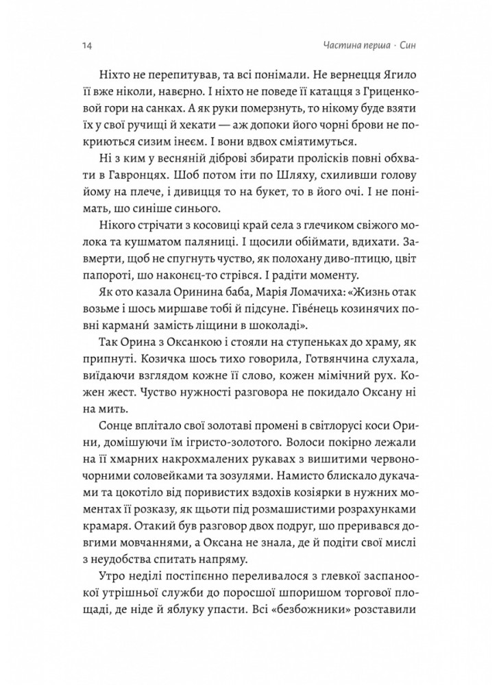 Здесь уж выбирать нужно вам, читателям. Саша Столовой, автор дебютного романа «Оринин. Роман о слепом мужчине», наследственный козияр и носитель локальной культуры, предлагает окунуться в мир говора, традиций, предрассудков, жажды свободы и игривой иронии, благодаря которым Демьян и его семья проживали перипетии бурного и порой смертельно опасного XX века. Да и сколько таких Орининых разбросано по Украине!